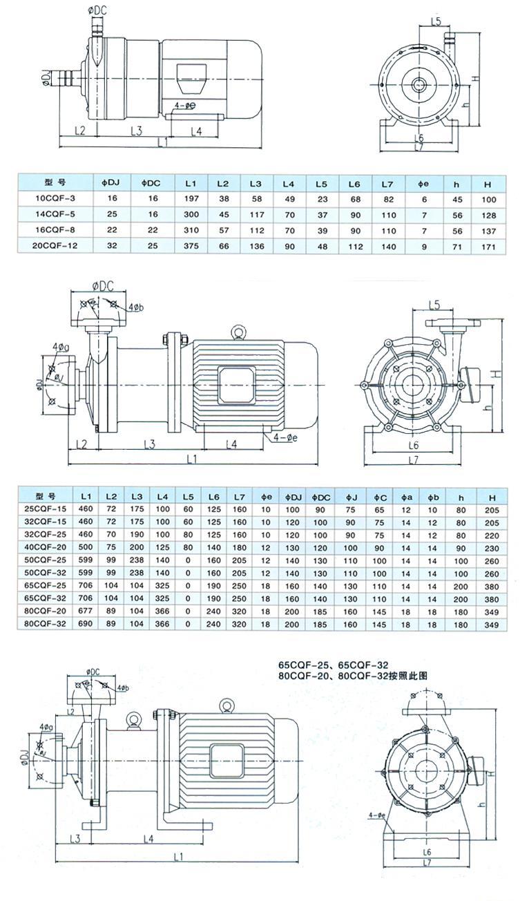 CQF型氟塑料磁力驅動泵(簡稱磁力泵)是將永磁聯軸器的工作原理應用于離心泵的新產品,設計合理,工藝先進、具有全密封、無泄漏、耐腐蝕等特點,無軸封設計,完全避免了傳統機械軸封泵存在的液體泄漏引起的腐蝕后污染的缺陷,是工業設備上理想的液體輸送泵。 生產歷史悠久,產品型號有多種型號,適合各種工業系統和程序上使用。其可靠性能及優越性能享有高的信譽,公司仍致力于開發新產品,為確保給用戶提供高質量的產品和完善的服務而不懈努力。