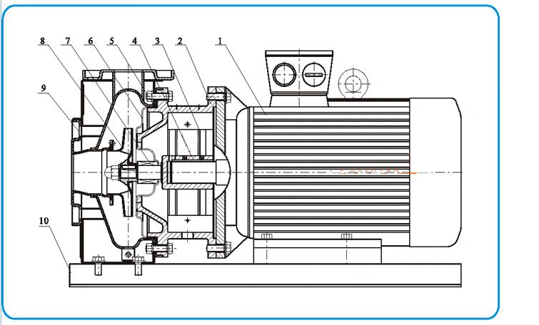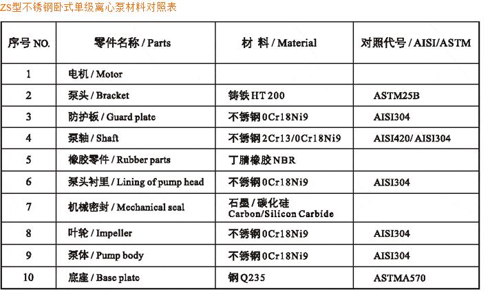 ZS型不銹鋼臥式單級離心泵為泵軸直聯型聯結,由泵、泵軸和標準電機組成: