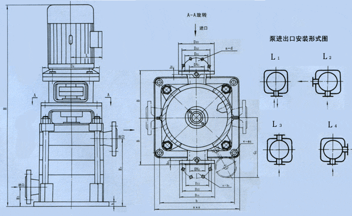 LG系列泵為立式安裝,電機軸與泵軸通過爪型連軸器聯接,具有結構緊湊、噪音低、占地面積小等優點。