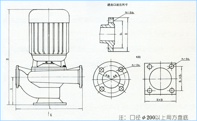 5、泵為立式結(jié)構(gòu),進(jìn)出口中心線在同一水平線上,且進(jìn)出口法蘭規(guī)格相同,安裝拆卸十分方便。