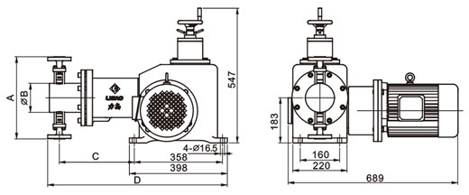 5流量調(diào)節(jié)特性:泵的流量調(diào)節(jié)是靠旋轉(zhuǎn)調(diào)節(jié)手輪,帶動調(diào)節(jié)螺桿轉(zhuǎn)動,從而改變弓型連桿間的間距,改變膜片在泵腔內(nèi)移動行程來決定流量的大小。調(diào)節(jié)手輪的刻度決定膜片行程,精確率為95%.