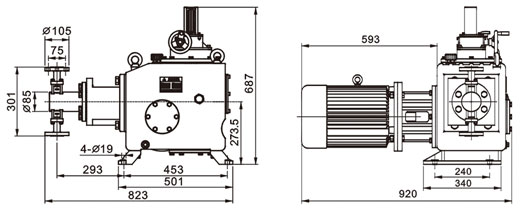 J-DR系列柱塞式計量泵主要是往復式柱塞泵、活塞泵,按泵的缸數可分為單缸、雙缸、三缸等多種類型。該泵可廣泛用于石油、化工、紡織、食品、造紙、原子能技術、電廠、塑料、制藥、水廠、環保等工業和科技部門。用來向加壓或常壓容器及管道內精確定量輸送不含固體顆粒的液體。其流量可以開機(或定機)時從0-100%范圍內無級調節。(根據計量泵的特性,最少行程一般不小于總行程的10%)單缸泵適用于單一液體的場合;雙缸泵可作比例泵使用,也可并聯使用;三缸泵可作為三比例泵使用,也可三缸并聯,以達到較大排量,增高了液體的脈沖頻率,促使液體連續順暢加入;六缸泵可達三缸泵二倍效果。